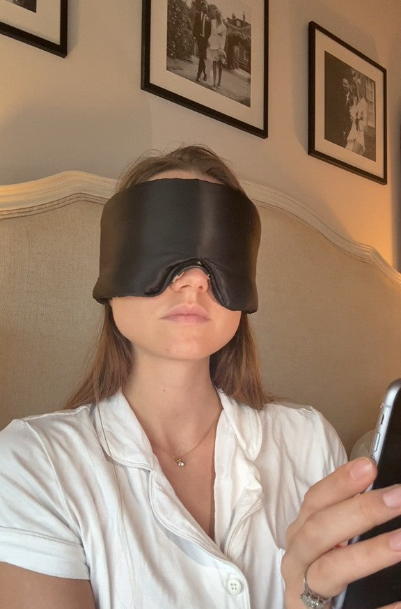 100% Mulberry Silk Sleep Mask – Ultra-soft, breathable, light-blocking comfort.